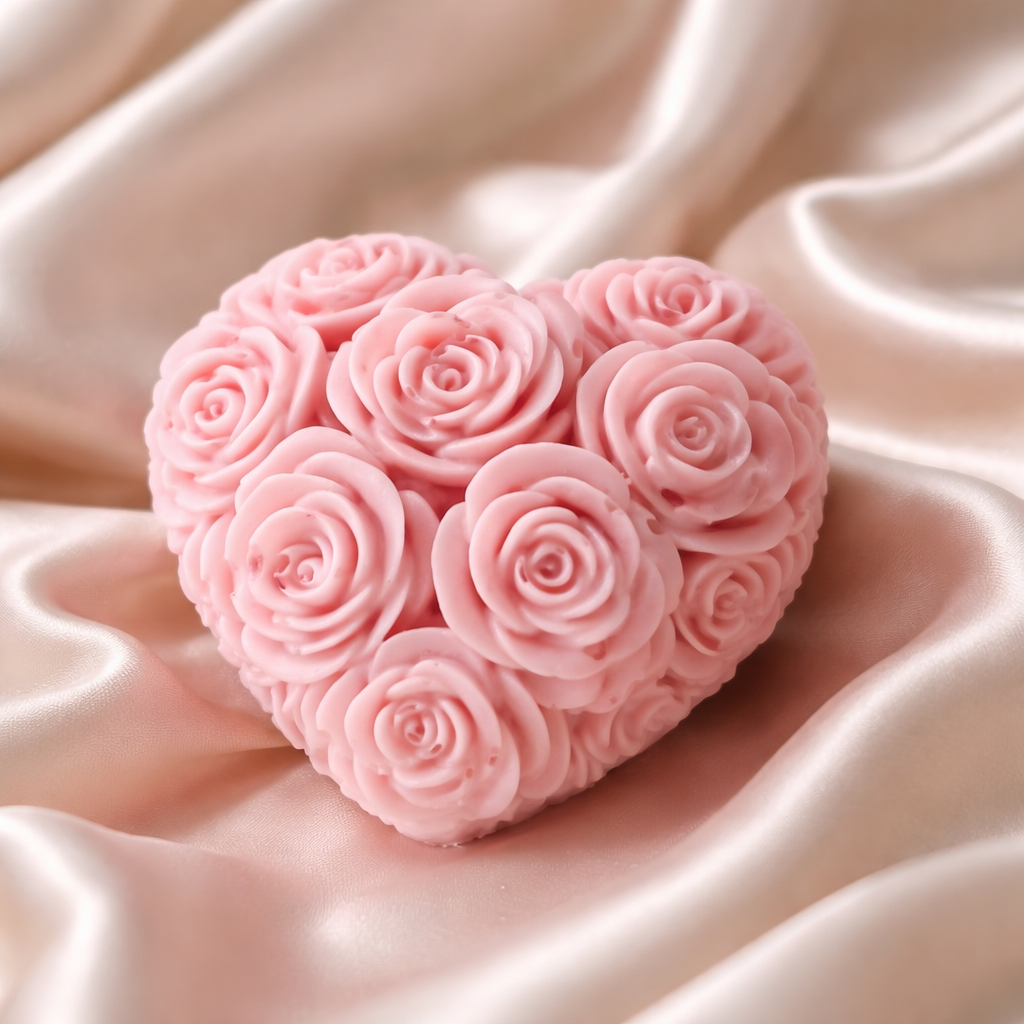 Dekorativno rozo voštano srce s reljefnim ružama za romantične poklone i zahvalnice.